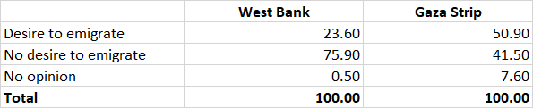 (Some technical background: Based on a sample of 1,361 people aged 18 and up and with the right to vote. 861 live in the West Bank, 500 in the Gaza Strip. The sample was drawn randomly. Margin of error about ±3%.)