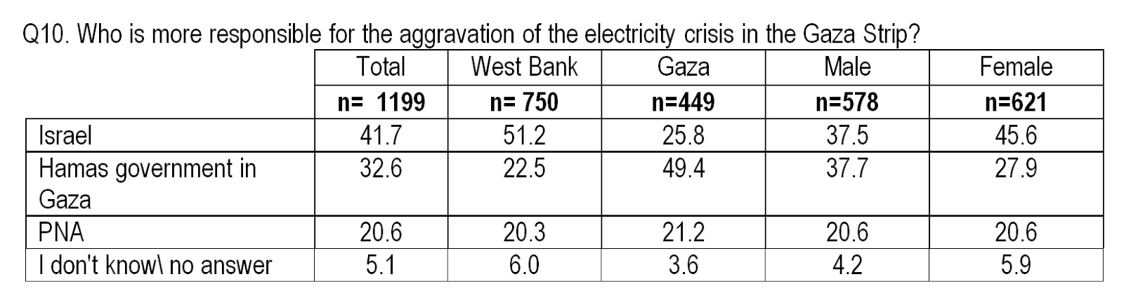 Now consider the results of JMCC’s rather inadequately named “Poll No. 89 – February 2017 – Gender, Equality and Politics” In the full text version of its analysis, it touches on Gazan anger at those responsible for the electric power power fiasco that is making hard lives even more stressful. And it gives numbers: