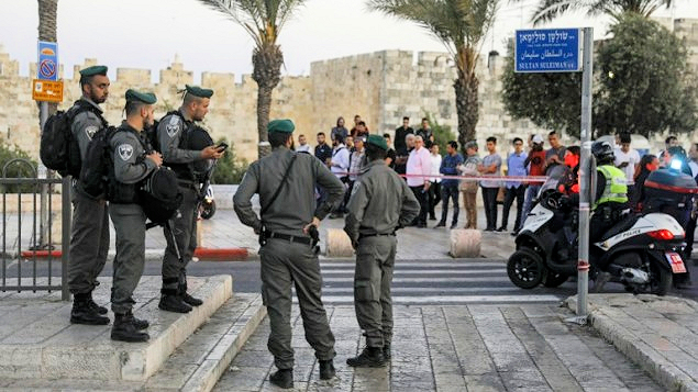Jerusalem’s Damascus Gate shortly after tonight’s thwarted attack [Image Source] |