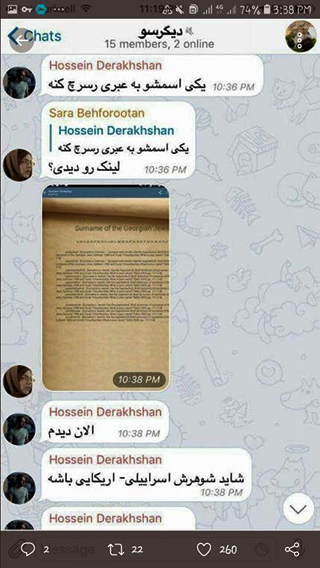 In hacked Telegram messages (see below – it was a huge scandal in Farsi social media), Hossein Derakhshan, an infamous propagandist of the Islamic Republic, smeared a Georgian chess player as Jewish/Zionist for refusing to attend a game in Iran where she would have to wear the Hijab.