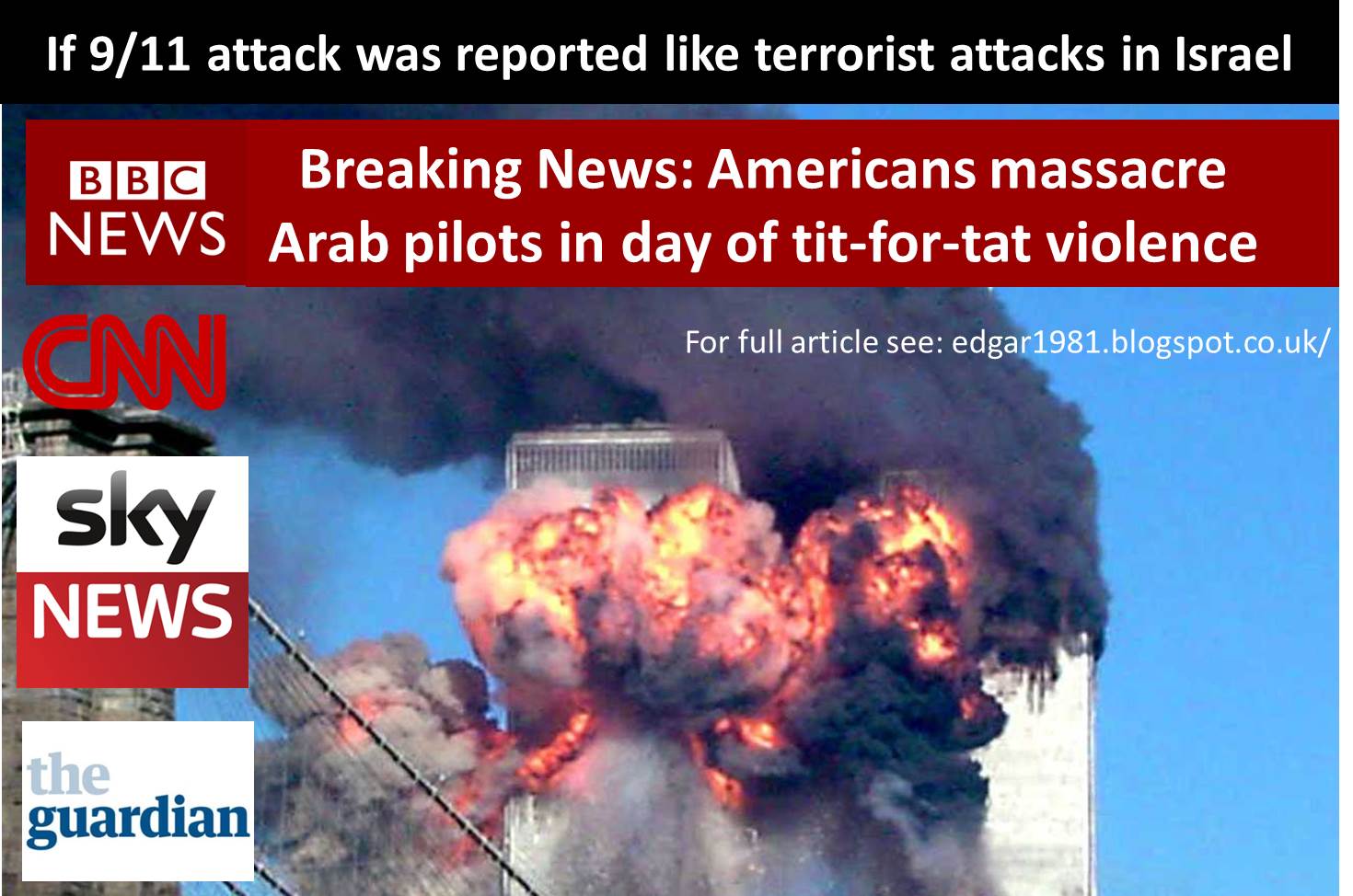 The cycle of violence in America spiralled out of control today when a series of violent incidents left thousands dead, including many Arab and Muslim civilians. UN sources and Al Jazeera have confirmed that many of the Arabs killed were refugee children who had fled from oppression. American claims that they too suffered “many civilian deaths” have been strongly denied by the UN-affiliated relief workers in the Al Qaeda organisation who maintain that the only Americans killed were military personnel and illegal settlers.