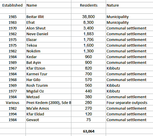 The communities of Gush Etzion, sorted by size of population [Data Source: Wikipedia] |