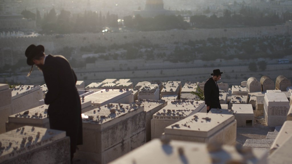 Young Hassidim, like this afternoon’s stabbing victim, are frequent visitors to the ancient graves of the Mount of Olives [Image Source] |