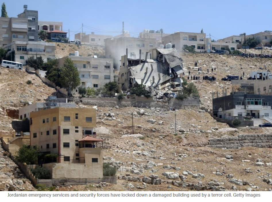 - Quoting not its own reporters but the Jordanian government, it says: “Four members of the Jordanian security forces and three “terrorists” have been killed during a raid on a militant hideout after an officer died in a bomb blast near the capital…”