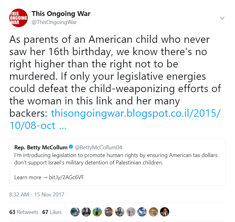 Maybe someone could ask Rep McCollum where she stands on Arab-on-Israel ramming/stabbing attacks like today’s. And whether she sees her Bill stopping them or encouraging even more.