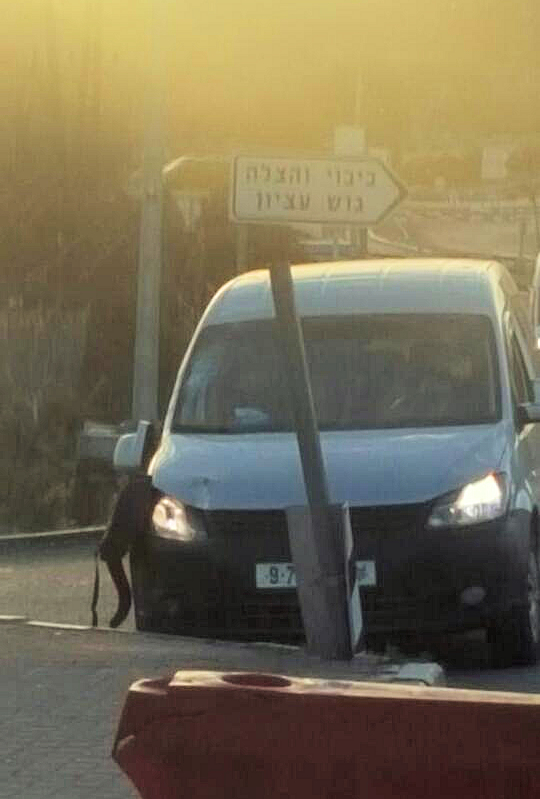 A Palestinian terrorist rammed his car into two people, seriously injuring one of them, before getting shot while trying to stab soldiers in the central West Bank on Friday morning, the army said. The driver of the vehicle, who has yet to be named, rammed his car into the first victim, a 70-year-old man, who sustained a light head wound, at the Efrat South junction, medics said. He continued down the road to the nearby Gush Etzion Junction where he hit another Israeli man, 35, according to the Magen David Adom ambulance service. The second victim was initially said to have been lightly-to-moderately wounded, but the hospital downgraded [sic] his condition to serious, with a brain injury. The army said the driver then got out of his car with a knife and tried to stab soldiers. “The soldiers responded by firing towards the attacker, resulting in his injury,” the Israel Defense Forces said in a statement. According to the hospital, the terrorist was in critical condition.