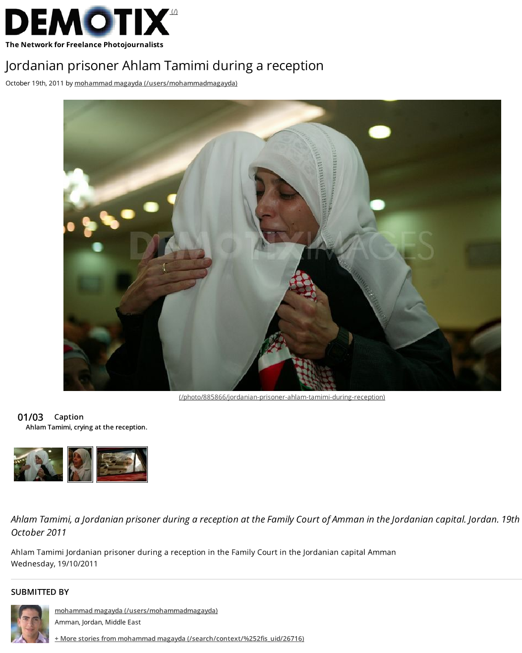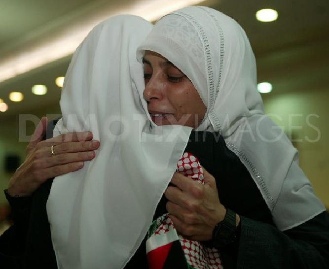 The photo at the top of this page is little-known. It comes from an online photo collection, Demotix, that is no longer on line. We archived it, fortunately, when it was still up. It shows a scene from a high-profile Jordanian reception for the happy murderer a day after she was released from her Israeli prison cell (October 18, 2011) and arrived back to her home-land via a brief stop-over in Cairo. This photo was captured on October 19, 2011.