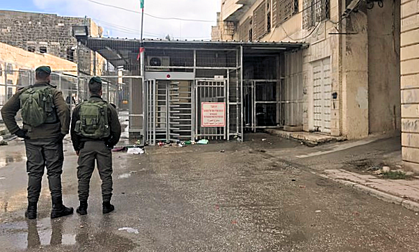 The security checkpoint, one of several in the vicinity of the ancient Tomb of the Patriarchs, where the woman and her two knives were intercepted on Friday [Image Source] |