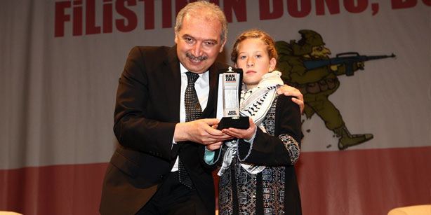 December 24, 2012: Recognizing the power of a a little blonde tyke teaching the Israelis a lesson, Turkey’s government awards the juvenile performer its Handala trophy [Image Source]