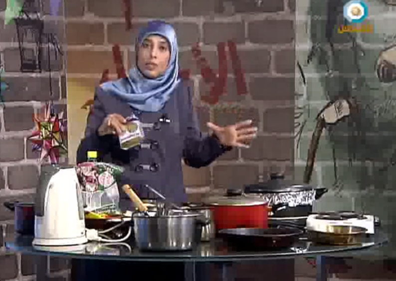 Our daughter’s happy and proud killer demonstrates prison-friendly cooking recipes for her world-wide audience in a 2015 edition of her weekly Hamas TV show |