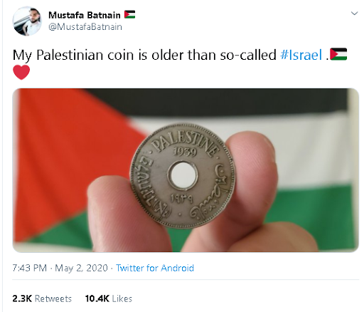 The arguments are uniformly stupid. The Arabs of Palestine protested against having their own currency, for one thing. This is a British coin.
