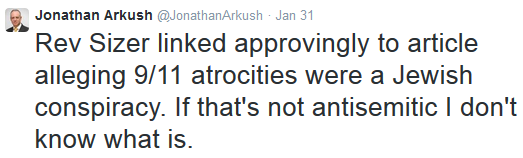 Readers will recall that following Sizer’s infamous Facebook post regarding Israel and the 9/11 atrocities he undertook, in the words of his superior Andrew Watson, Bishop of Guildford: