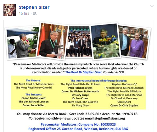 Over the past week or so Stephen Sizer has been letting his faithful know of his characteristically busy schedule.
