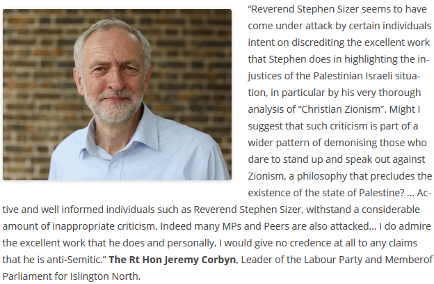 May I say I don’t agree at all with everything Stephen Sizer writes. We approach things in a different way, though both of us are very concerned for the rights of Palestinians. Nonetheless, I have not read any statement in any of his books, articles, or teaching or any other place where Stephen could ever be said to be anti-Semitic. Pre-programmed as I am from my upbringing and its unquenched flow into my present convictions, I would pick up any nuance of this kind like a shot, and I would have done so at any point over the forty years we have been friends. He simply is not ant-Semitic and it is very wrong indeed to suggest that he is so….