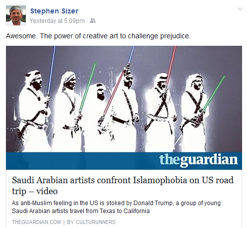In the end Stephen is a gentle but firm peacemaker, who lives out the Biblical mandate that all are made in the image of God, and I have never in anything he has done seen a hint of anti-Semitism. He has worked with Jewish peace activists …”