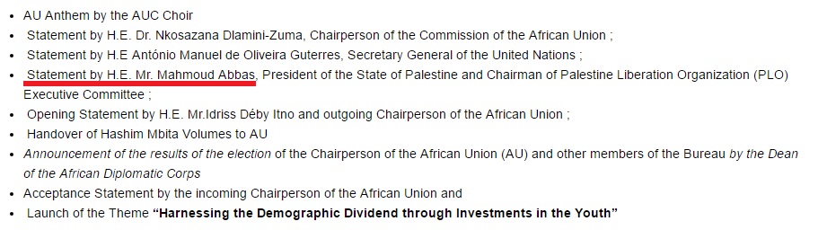 Mahmoud Abbas managed to get one of the keynote speeches at the African Union Summit happening now in Addis Ababa.