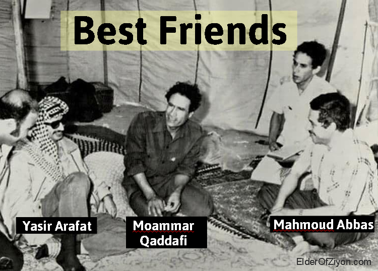 The Fatah Facebook page proudly showed a photo of Yasir Arafat, Moammar Qaddafi and Mahmoud Abbas, laughing it up together in Libya.