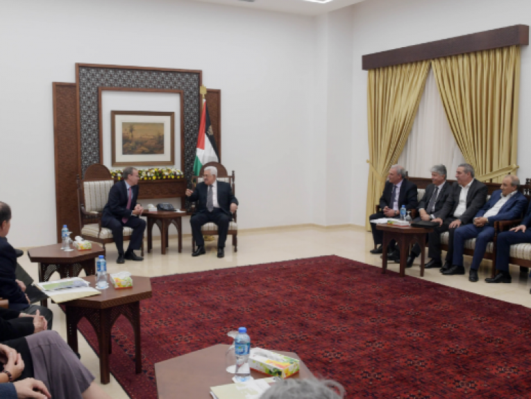 PLO leader Mahmoud Abbas met with J-Street leader Jeremy Ben-Ami and a J-Street delegation today at Abbas’ presidential palace in Ramallah.