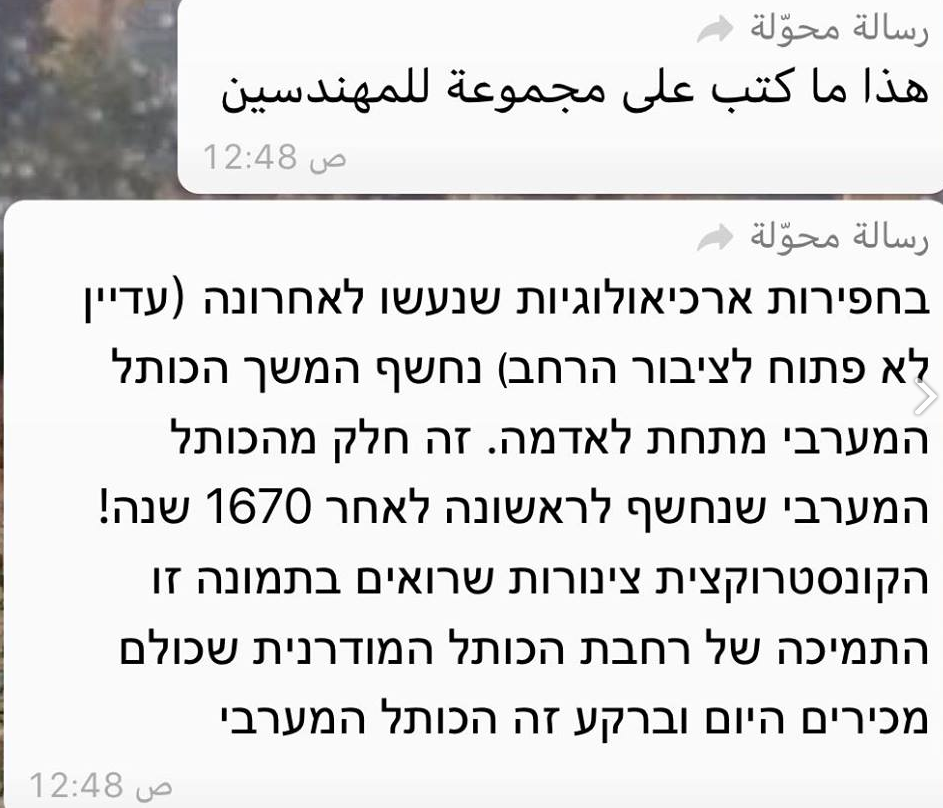 The WhatsApp message says that these finds are not yet public and are directly beneath the Western Wall plaza we know of today.