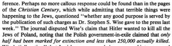 The good Christians at the Christian Century didn’t think the planned slaughter of 1.5 million Polish Jews was a big deal. That fact was only useful as proof of how Jews lie and exaggerate.