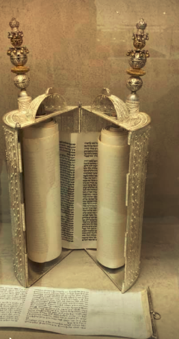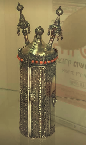 Some of the Torah scroll silver filigree finials and casings and other artefacts on display at the Yemenite Heritage Center