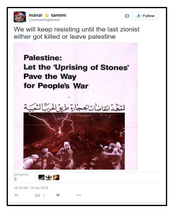 I have no doubt that as a “world-renowned Jerusalem expert,” Seidemann knows very well that the Tamimis have been rooting for years for a “third intifada,” and that as far as they are concerned, the ultimate goal of this intifada is the end of Israel. As Ahed’s father Bassem Tamimi put it two years ago during a speaking tour in the US: “Israel is a big settlement” and “the problem is the ‘colonial project’ of Zionism.”