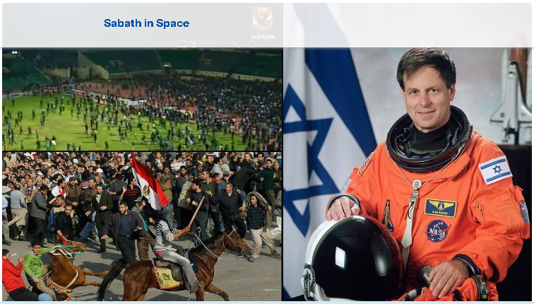 February 1 was the 15th anniversary of the death of Israeli fighter pilot Ilan Ramon aboard the space shuttle Columbia. It is also (close to) the anniversary of the Battle of the Camel, where Egyptian President Mubarak violently put down a demonstration, killing 11 protesters in 2011. And on February 1, 2012, there was a riot at the Port Said soccer stadium killing 74.