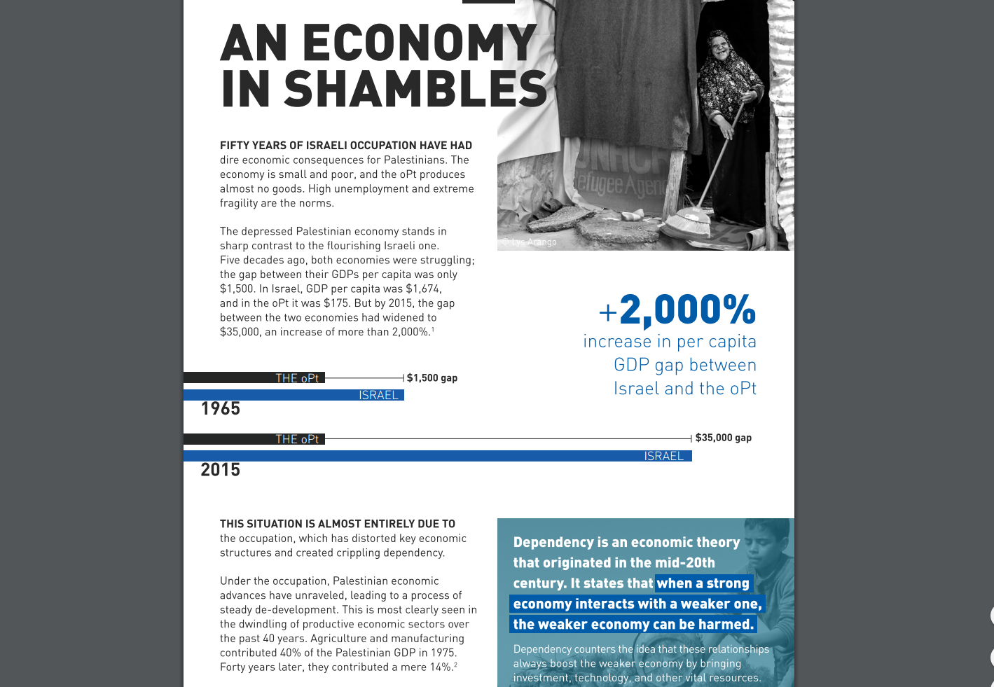I just saw a report put out last month by AIDA, an umbrella organization of 70 NGOs in the territories, including Oxfam and Amnesty..