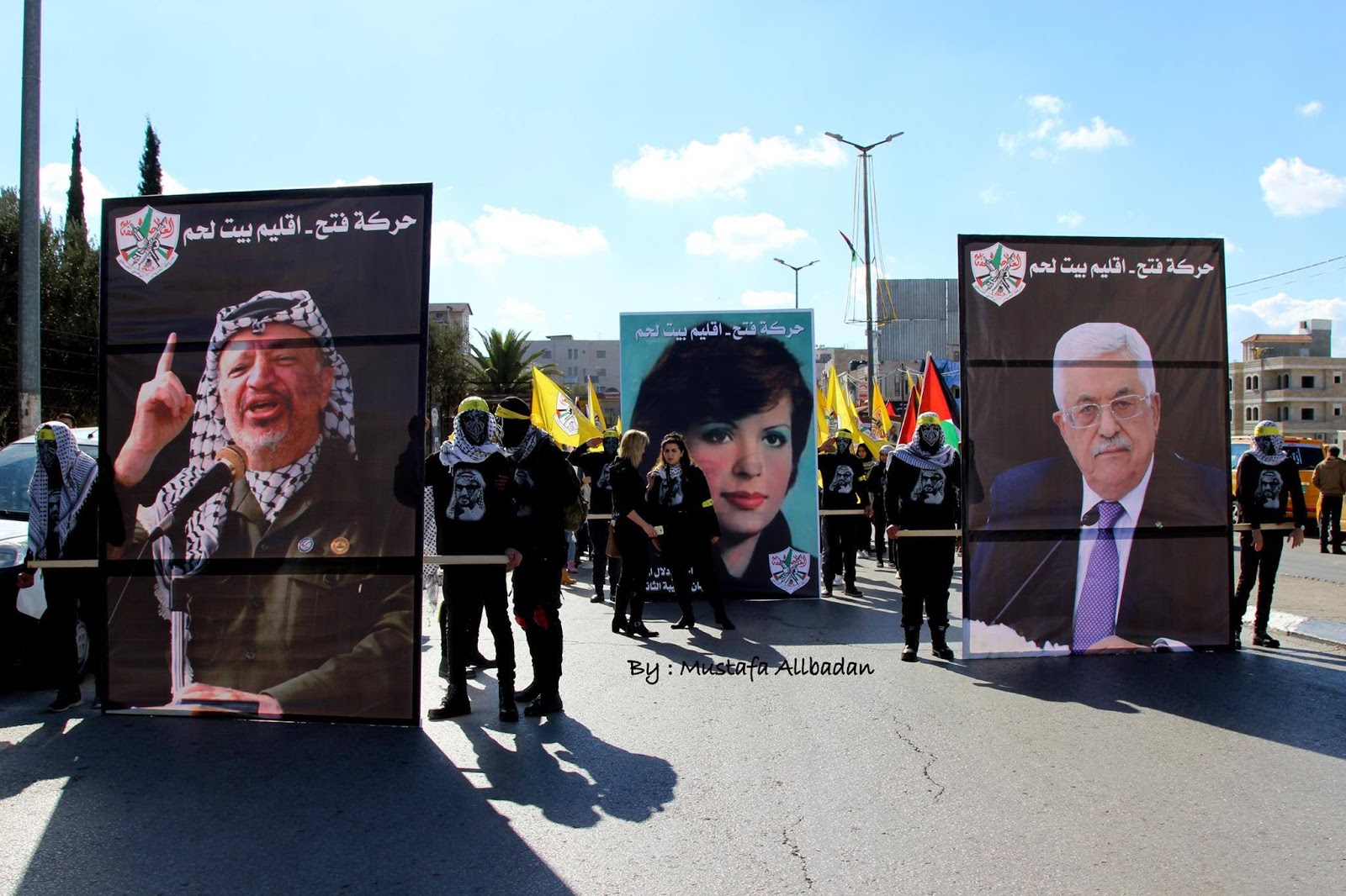 And large posters of Fatahs’ heroes: Arafat, Abbas, and terrorist Dalal Mughrabi: