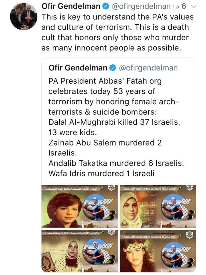 Israel’s PMO Arabic media spokesperson Ofir Gendelman wrote this on Facebook: