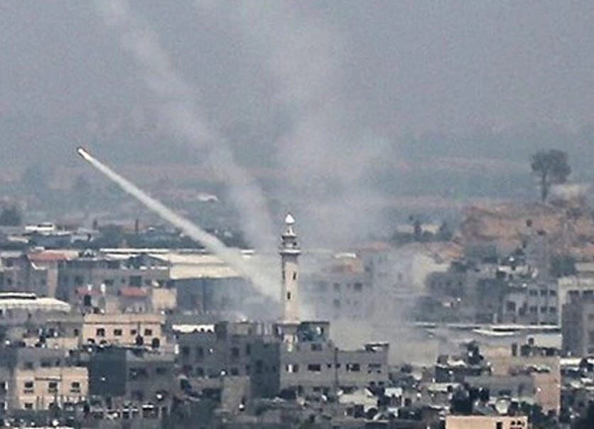 But here are three photos, showing rocket fire that sure seems to be coming from the base of a mosque’s minaret in Gaza City: