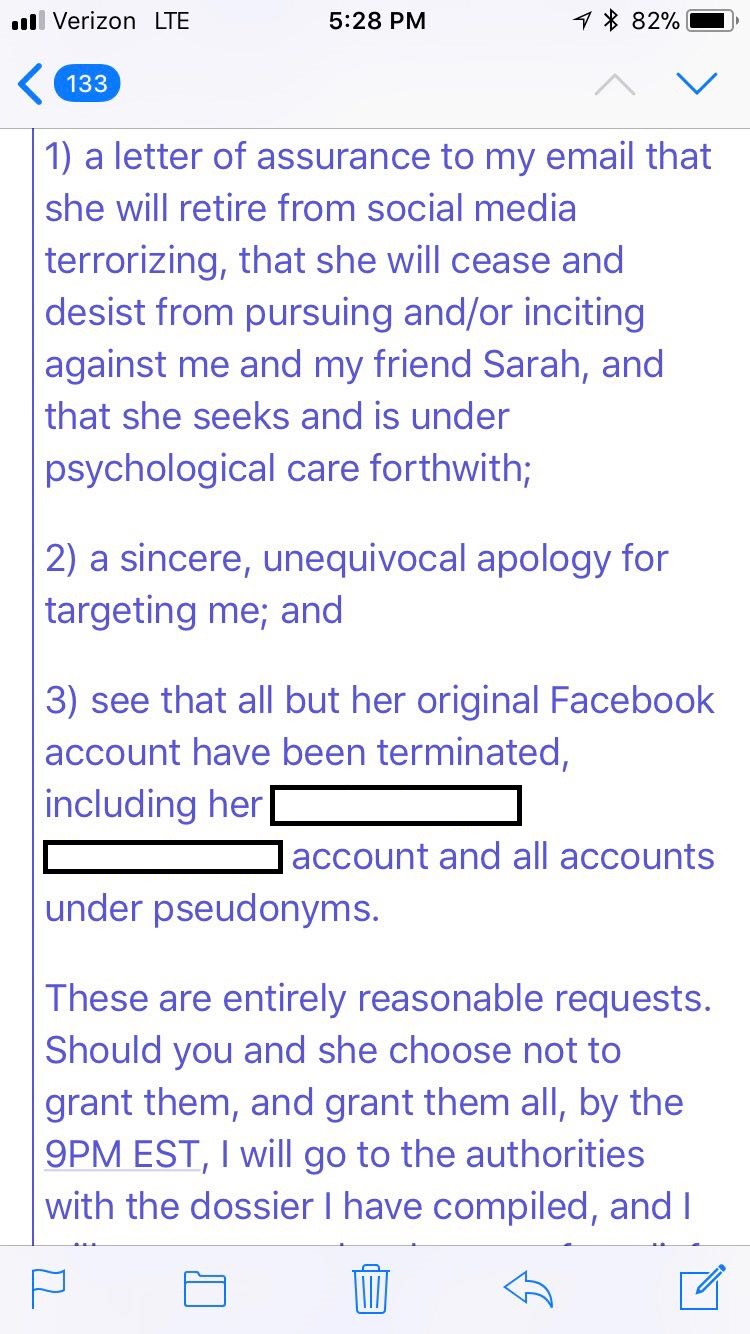 S, like my husband, Ryan, and Ari, knows the identity of the man who is trolling her. It’s actually the same person trolling all four of them, using fake profiles most of the time. But in one case, the troll outed himself, using his real email address, phone number, and signature when complaining about S to S’s husband at his work address (!), accusing S of infidelity (among other iniquities), and threatening litigation.