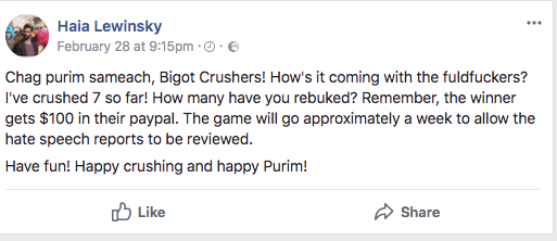 “We thought we could change minds with facts. But they didn’t want facts. They wanted to degrade us. We reported every antisemitic comment. But Facebook didn’t think ‘dirty Jew’ or ‘jump back in the ovens’ violated their community standards.