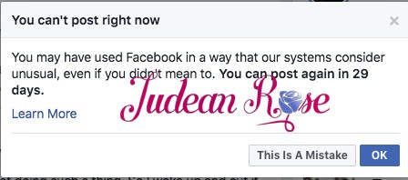 A rather neat coincidence, I thought, that my husband was released from Facebook “jail” an hour before the Passover holiday began. Another name for Passover, is, after all, Zman Cheruteinu, the time we mark our freedom; our liberation from bondage. Four days later, however, while the holiday celebrating our freedom was still in full force, my husband landed back in the (Facebook) slammer once more.