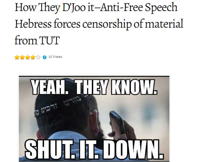 Comment referring to “jew-dogs” and “jew-rule” on the content that was disabled as a result of my DMCA notice.