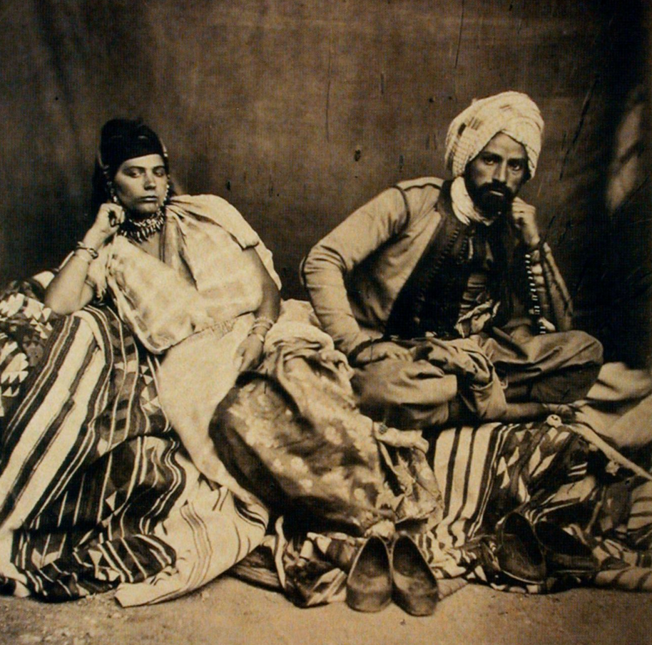 Top: An Algerian Jewish couple, 19th century. Middle: Jose Aboulker, resistance leader. Bottom: US troops landing in Algiers harbour.