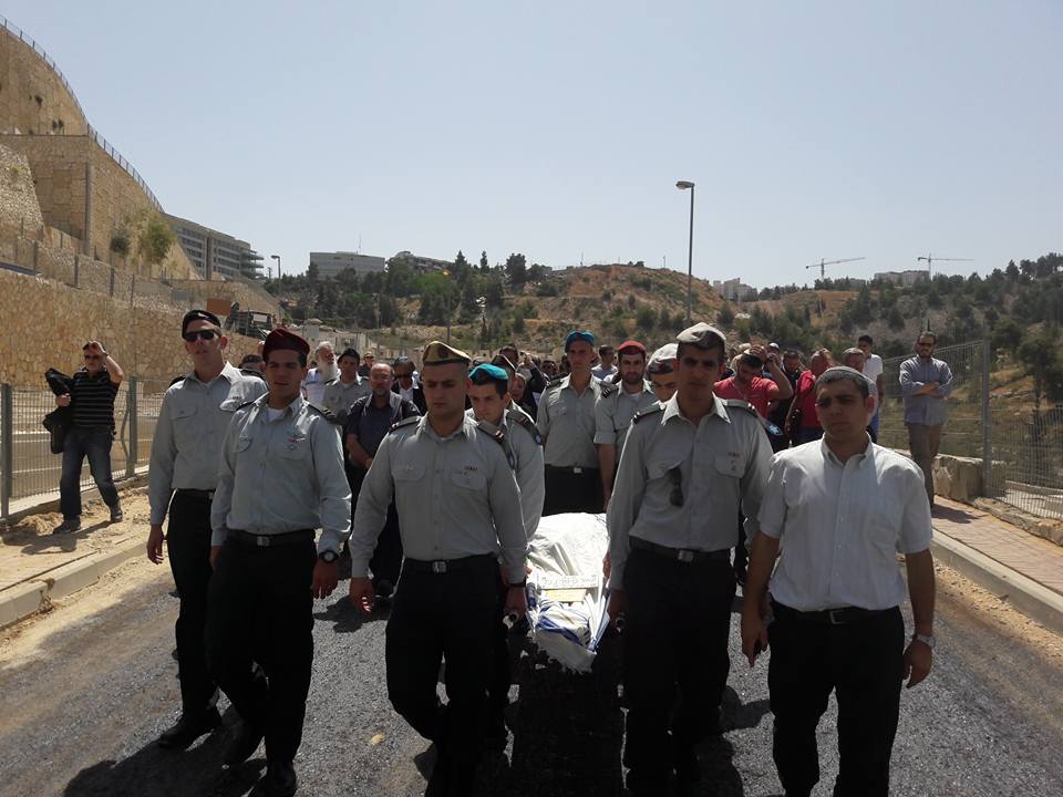 The burial society motorcycles escorted the procession and the coffin was carried by IDF officers and soldiers who came on their own initiative.