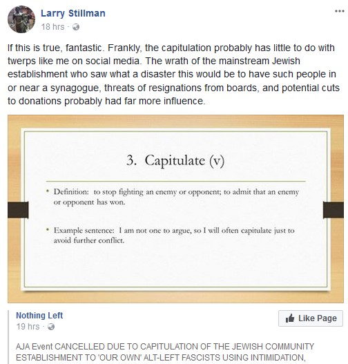 Meanwhile one Jew who had intended to turn up to protest the event jibes: