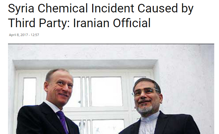 Iran’s top security official says the Tuesday chemical incident in Syria’s Idlib province was definitely caused by a third party in an effort to pave the way for the US strike on the Syrian airbase.