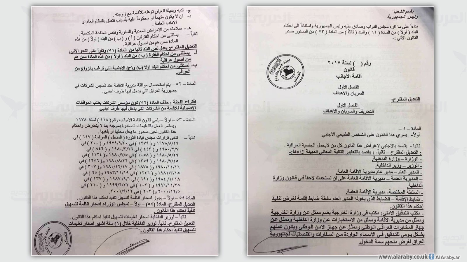 The new law replaced Law No. 202 of 2001, issued by former President Saddam Hussein, forcing the Iraqi state to treat Palestinians as equals to Iraqis, with all privileges and citizenship rights, such as tax exemption, opportunities to work in government departments, and access to education and health care services.