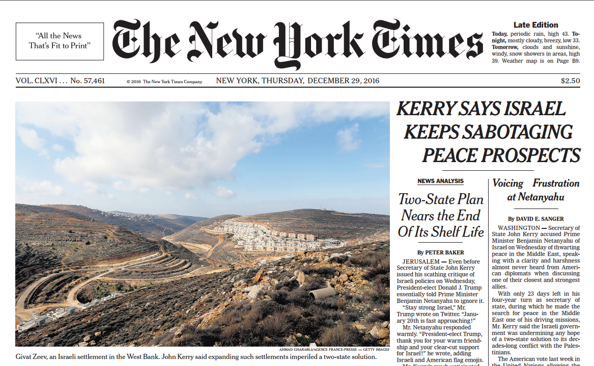 At least one thing is accurate about the NYT coverage: the speech was directed at Israel, and gave Palestinians a pass, outside of the obligatory “we tell Palestinians that they really should stop incitement and terror. Pretty please” disclaimer to make the position of the outgoing US administration appear even-handed.