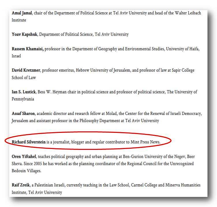 The Spring 2017 edition of Fathom – a journal that offers a lot of interesting material on Israel – includes a review of a book that was publishedlast year under the title “Israel and Palestine: Alternative Perspectives on Statehood.” As this title indicates, the book is yet another attempt to legitimize proposals to do away with the world’s only Jewish state, though it also features contributions by academics who reject the so-called “one-state solution”. According to the Fathom review, the book “originated in a 2011 conference organised by the Political Science Department of Tel Aviv University,” and in view of this information, I was sure that the Richard Silverstein mentioned as one of the contributors couldn’t possibly be the notorious blogger.