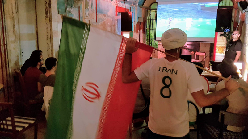 This scene did not take place in Tehran or at the stadium in Kazan, Russia. It was in a bar in Jerusalem, where the fans were mostly Israelis expressing their shock and disappointment at Iran’s defeat.