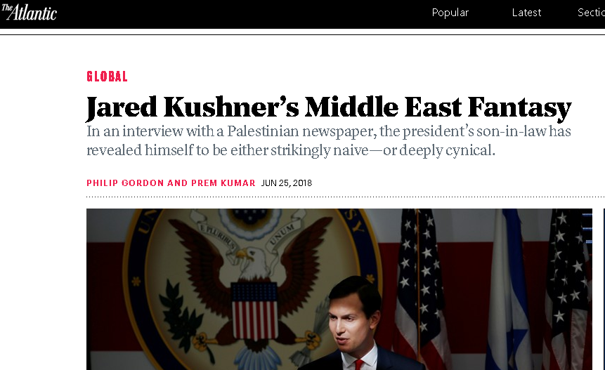 The new article in The Atlantic, Jared Kushner’s Middle East Fantasy by former Obama administration Philip Gordon and Prem Kumar, is fascinating – but not because of their analysis.