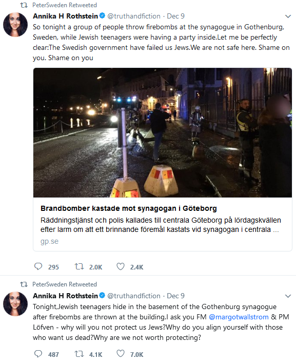 The BBC and most of the mainstreammedia gave the firebombing of a synagogue in Gothenburg on Saturday little publicity, perhaps because no one was physically injured. But the incident has left scars.