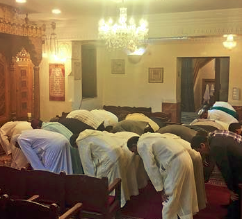 Muslims pray in the Bet El synagogue in Marrakesh before breaking their Ramadan fast at the Iftar meal