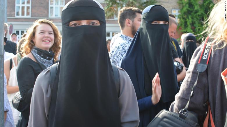 Hundreds of demonstrators gathered in the Danish capital of Copenhagen wearing burqas and other face veils Wednesday to protest a law against facial coverings, saying the legislation oppresses some Muslim women and violates their rights.