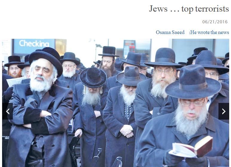Today’s example of blatant antisemitism in Arab newspapers comes from Al Jarida in Kuwait, which headlines an article “Jews: Top Terrorists.”