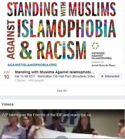 But as seen on the Facebook page of the New York coven (I use that word advisedly) of the anti-Israel so-called “Jewish Voice for Peace” the fascist left was also out and about, proving once again its intolerance for democractic values and free expression: