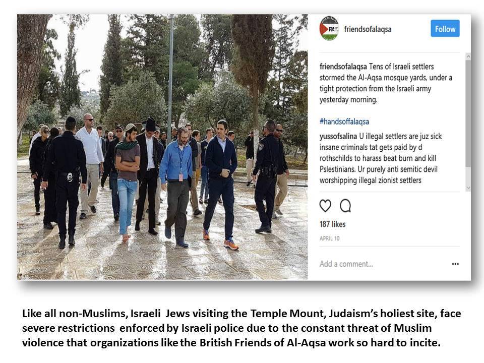 As I have repeatedly noted, the pernicious libel that Jews want to damage the Al-Aqsa mosque was first invented in the 1920s by Haj Amin al Husseini, the Mufti of Jerusalem, who later gained notoriety as a Nazi collaborator; his successors now operate freely in Britain and are organizing a major event in a prominent location in central London. Anyone who participates in this event and supports it by visiting can proudly claim to have contributed to promoting the legacy of a man who was also once described as “Hitler of the Holy Land.” And as it happens, quite a few of the preachers who speak at Al-Aqsa and lead prayers there have fantasies that are rather Hitleresque – so let’s conclude with just one of the more recent examples. It’s not hard to imagine that the British Friends of Al-Aqsa greatly enjoy this kind of sermons privately, though for some reason, they’re apparently reluctant to share them with their fans…